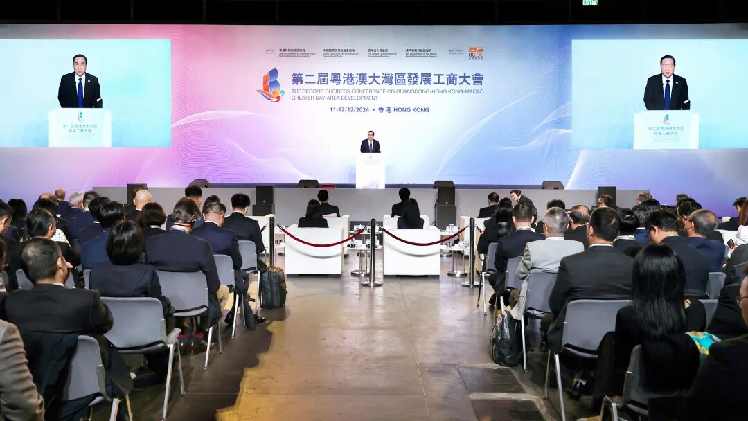 12月11日,由中国贸促会、广东省人民政府、香港特别行政区政府、澳门特别行政区政府共同主办的第二届粤港澳大湾区发展工商大会在香港开幕。香港特别行政区行政长官李家超、澳门特别行政区行政长官贺一诚、中国贸促会副会长张少刚、广东省人民政府副秘书长黄明忠在大会开幕式致辞。